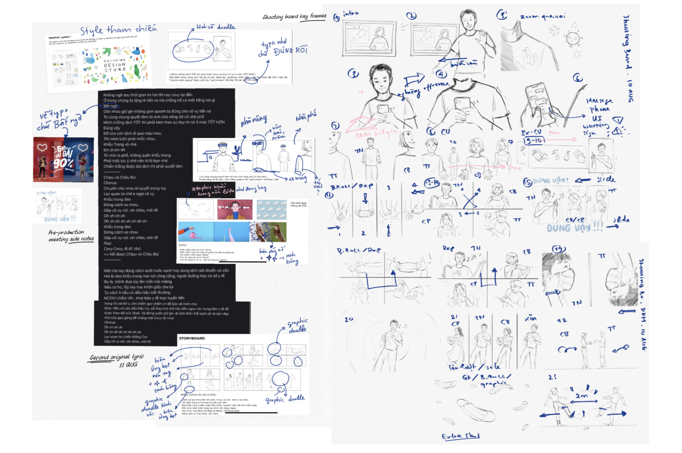 Tụi mình đã quyết định quay phông xanh cho tất cả phần diễn xuất cũng như các cảnh chính để cắt gọn được phần set design, hạn chế được số ngày và số người on-set. Những treatment còn lại tụi mình sẽ làm graphic motion kết hợp với product shoot thôi, cũng để đảm bảo vấn đề giãn cách on shoot nữa.