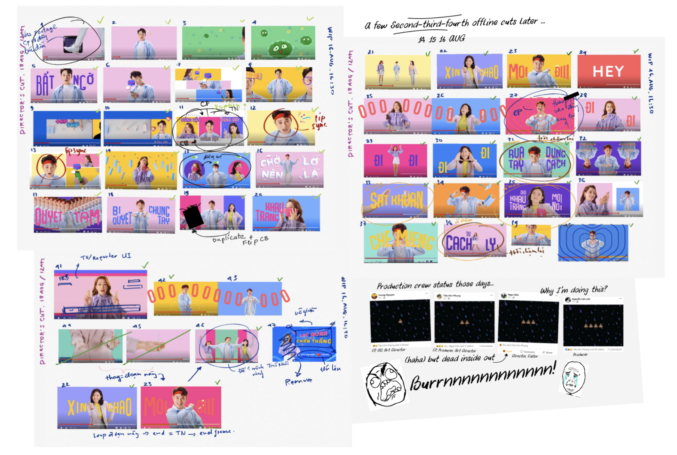 Vì làm animation frame by frame nên khúc hậu kì thật sự nguyên team mình đã ăn ngủ tại studio của artist và post house để cung nhau check frame và điều chỉnh artwork kịp thời. Màu sắc phối với nhau cũng là cả quá trình tụi mình tính toán. Và đây là thành quả như tụi mình mong đợi nè.