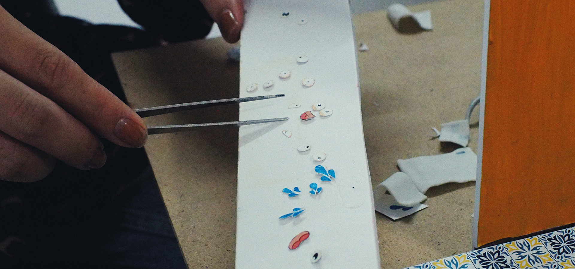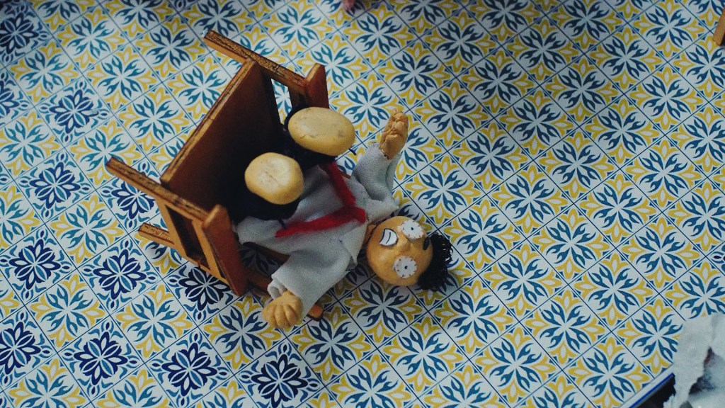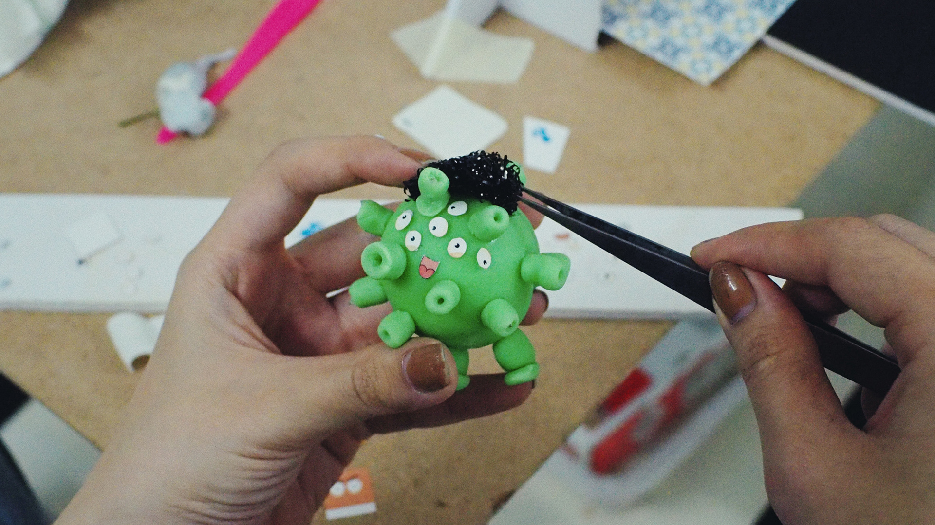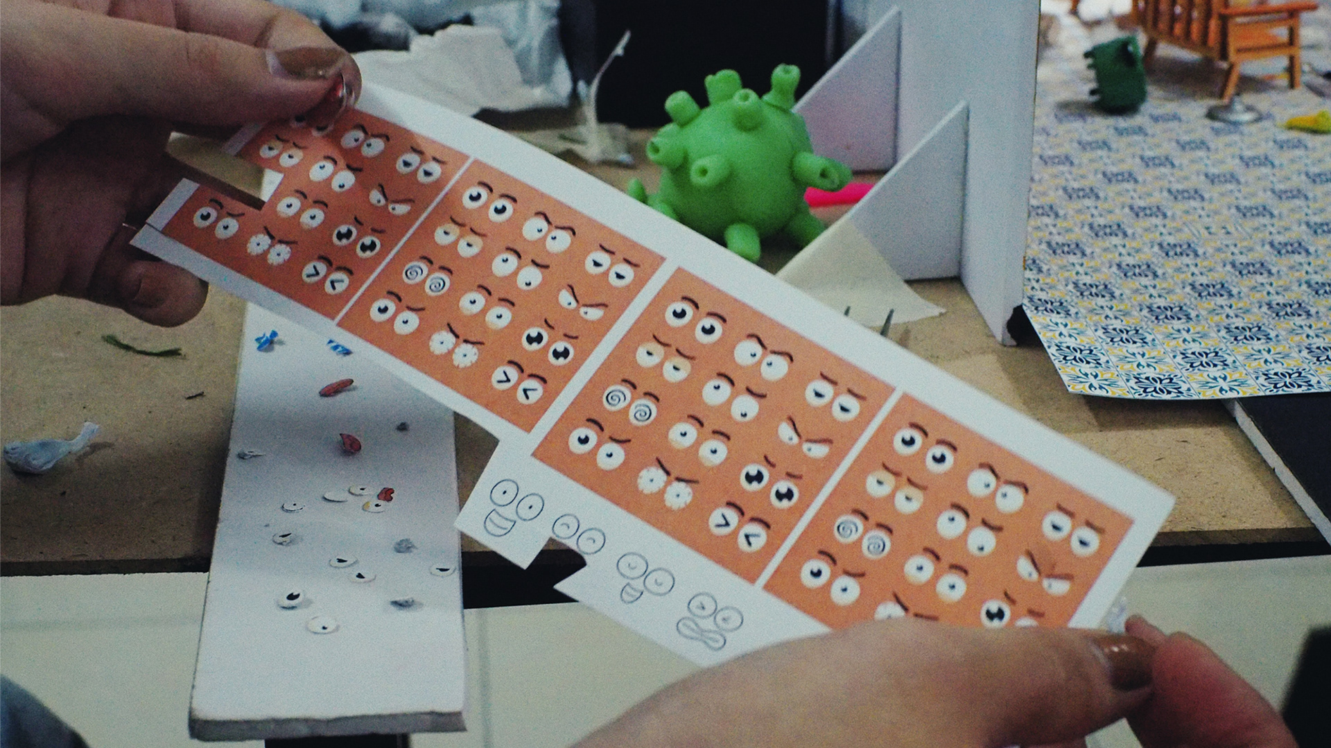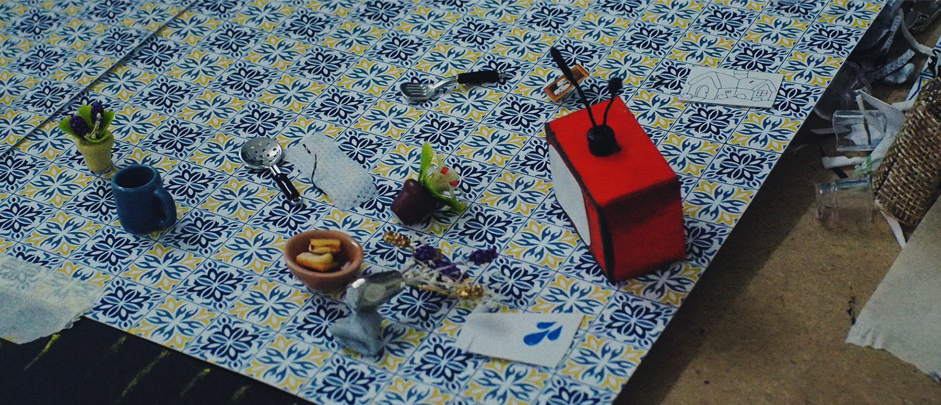 The set is smaller than an usual stop motion set, 30×35 centimeter, we have to very careful to move the charaters and stuffs around without changing the current set up. What a tough job for people with big hand pawns.